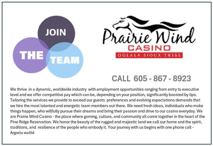 Discover where tradition meets excitement at Prairie Wind Casino — a place where gaming, culture, and community come together in the heart of the Pine Ridge Reservation. More than just a casino, Prairie Wind honors the spirit of our people and the beauty of the land we call home.